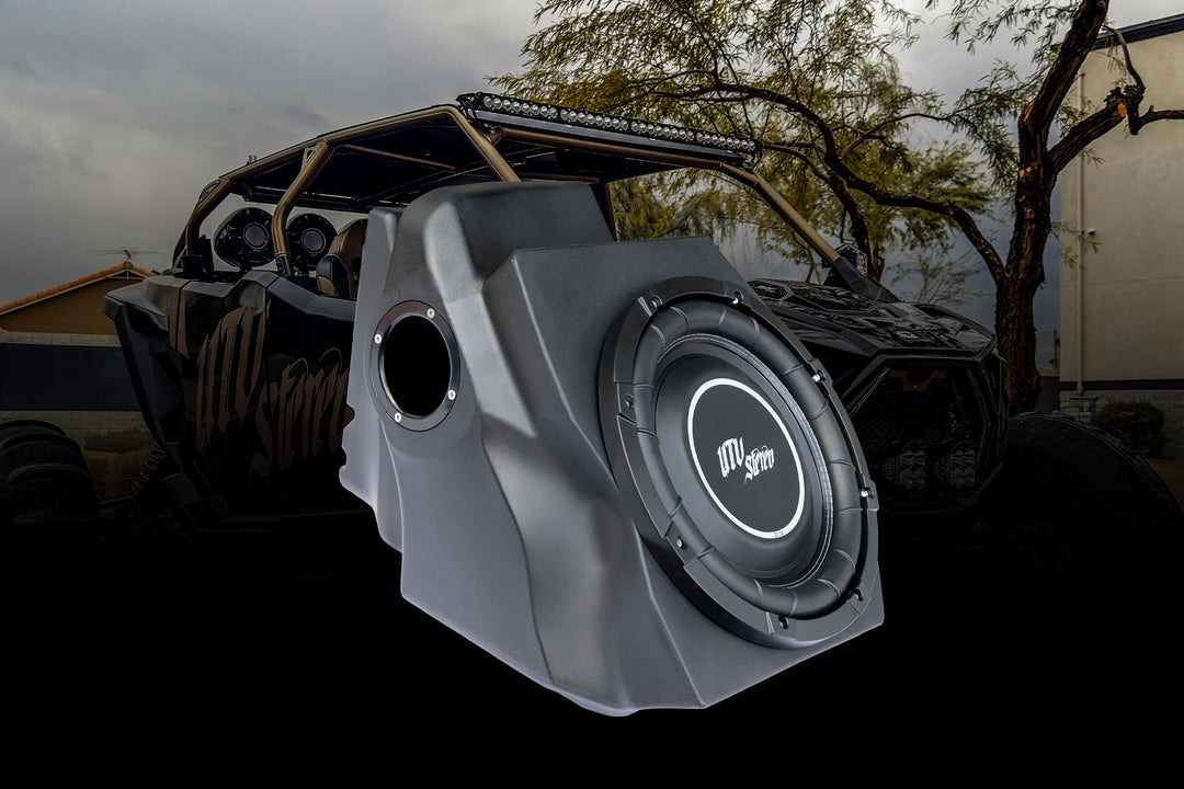 This kit includes a UTV Stereo Elite 10" Subwoofer, Low-Profile Sub Enclosure, Pro Series Gauge Amp Mount & Elite Series 1200.1D Amplifier