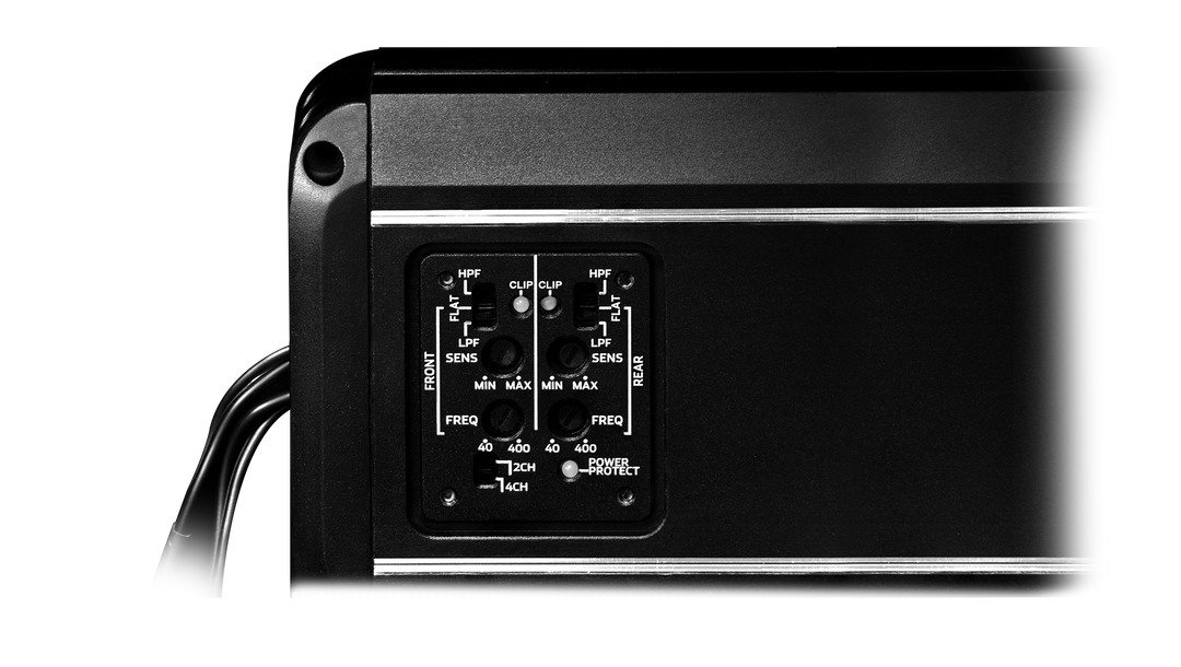 - RMS Power Output at 4 Ohm Bridged: 400W x 2CH