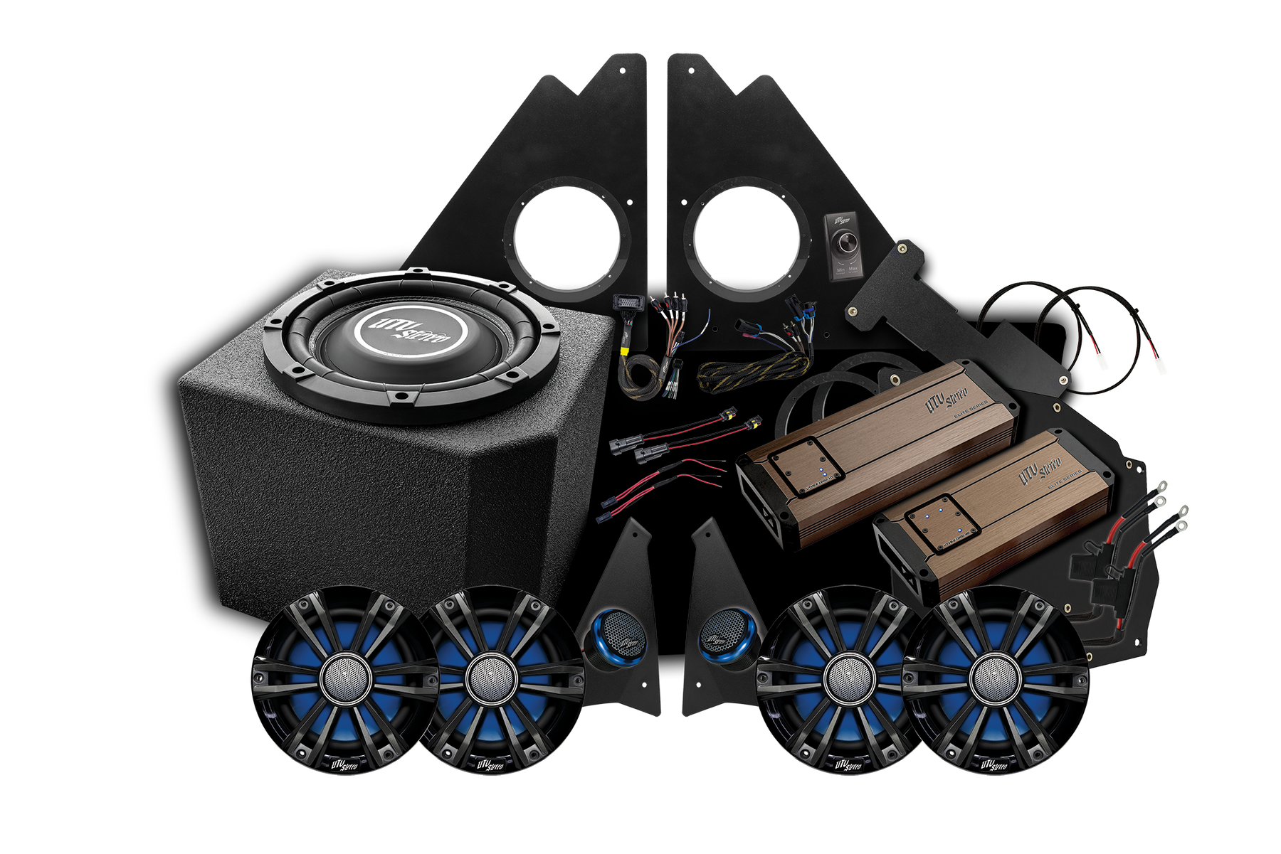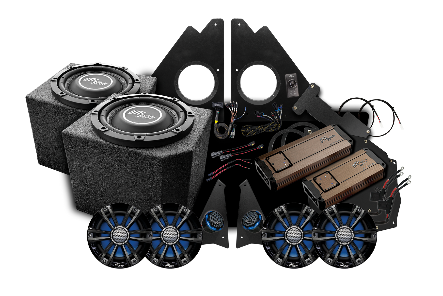 This kit is equipped with 4 full-range, high output 6.5" speakers. These IP65 rated speakers each receive 125 Watts of power.