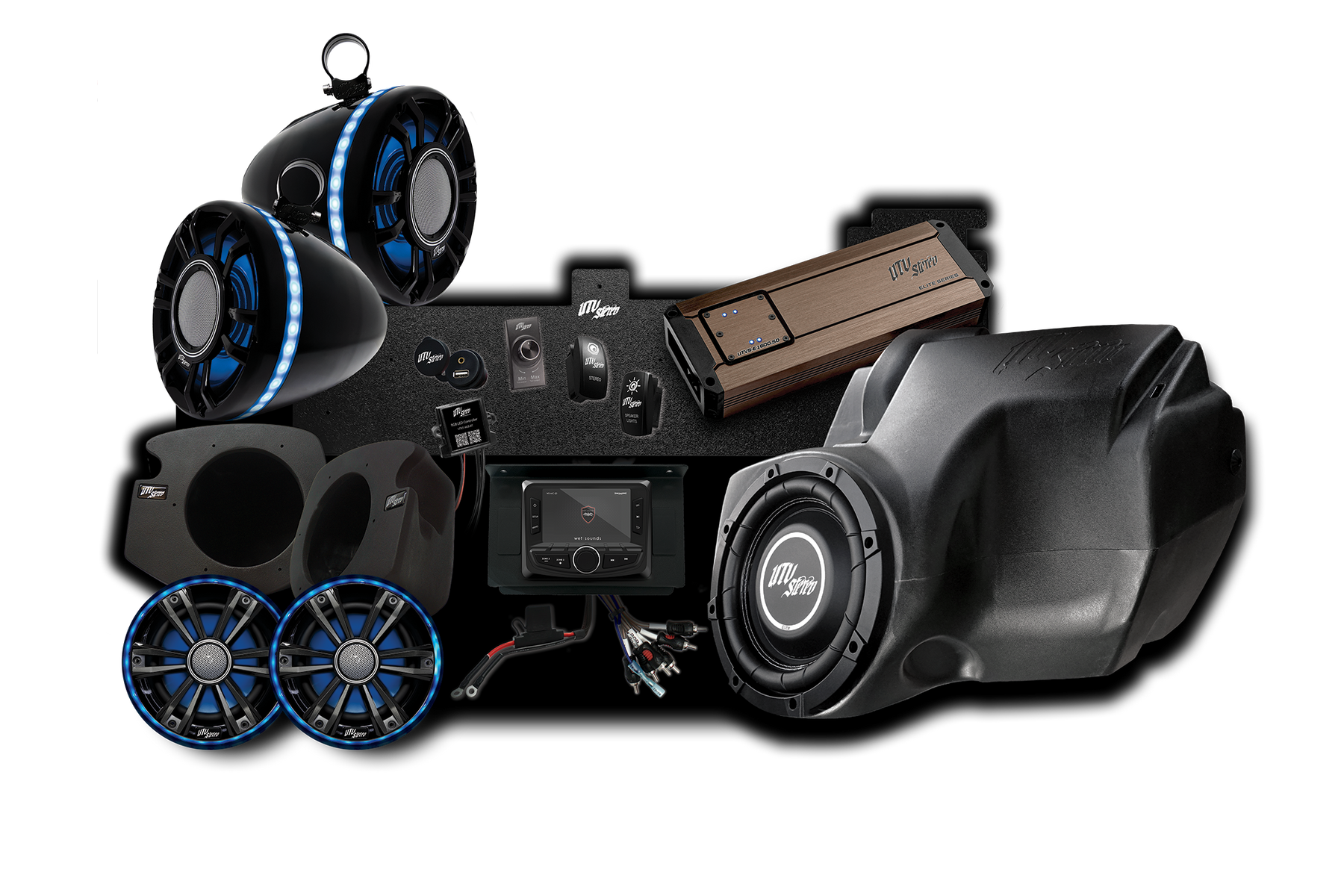 UTV Stereo Elite Stage 6 Stereo System Designed to fit Polaris RZR Models Includes: