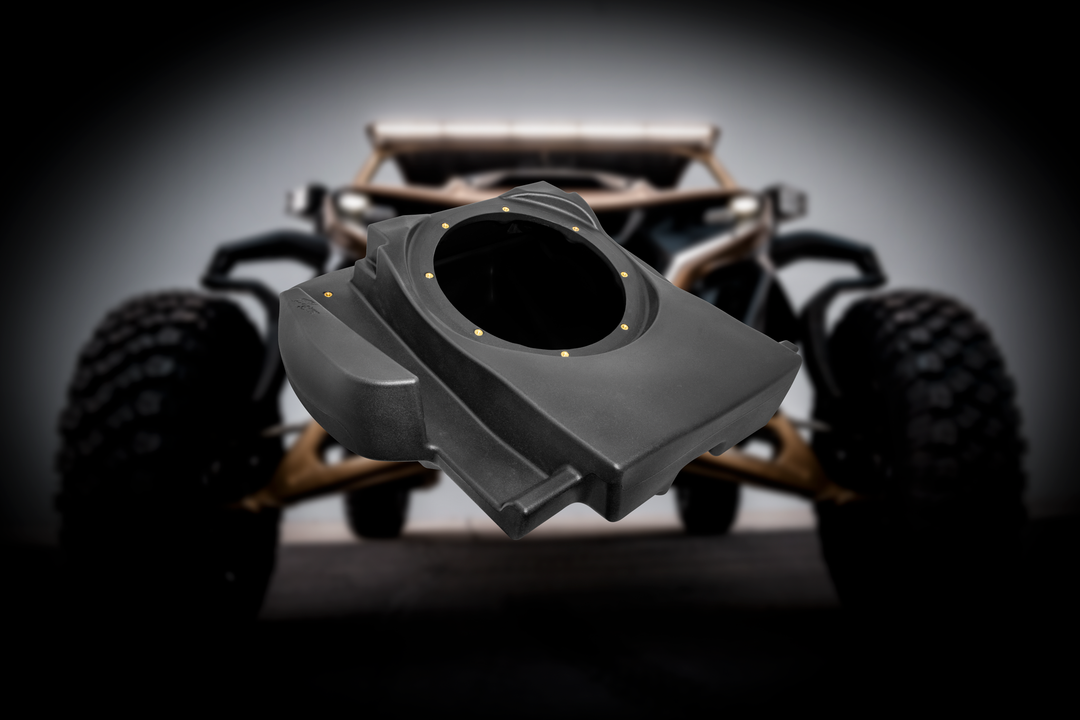 UTV Stereo has designed a 10" subwoofer enclosure compatible with the Can-Am® Maverick R Front Driver
