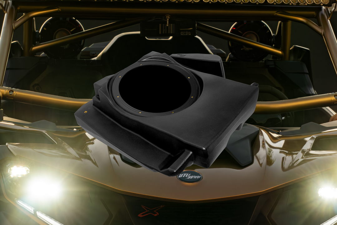 UTV Stereo has designed a 10" subwoofer enclosure compatible with the Can-Am® Maverick R Front Driver