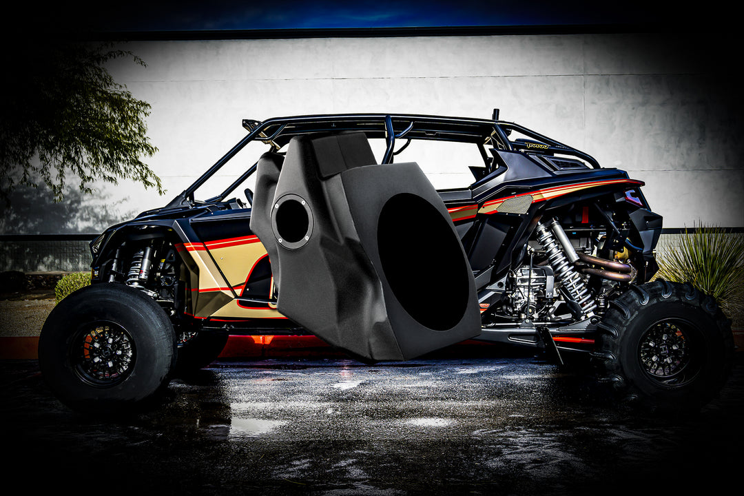 Engineered for maximum output, our 12” enclosure is a form fit, direct interior texture match to your 2020-24 Pro Series RZR® for ZERO firewall rattle, and VENTED towards the amplifiers for extra air circulation. This enclosure provides the LOUDEST & CLEANEST bass response ever designed for your RZR.