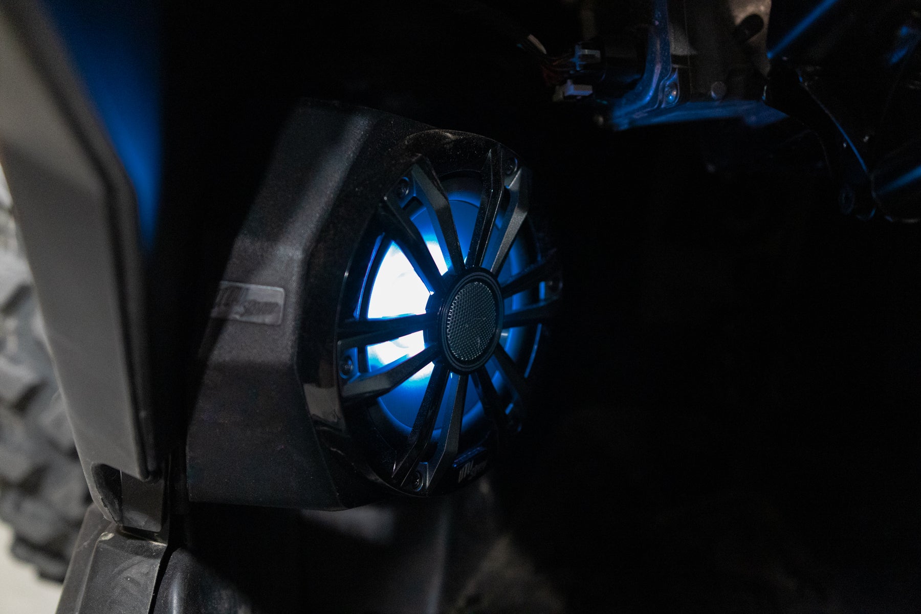 Our Signature Series 6.5” speakers provide you with professional high-fidelity audio at maximum volume, offering ample mid-bass and treble. We designed them to have an indestructible weather-resistant one-piece grille and basket so that you can have peace of mind while out tearing up the trails, mud bogging or enjoying the dunes. The speakers feature built-in RBG LED lighting which, when combined with the included UTV Stereo RGB Bluetooth® Controller, unlocks limitless color and music sync options right at your fingertips.