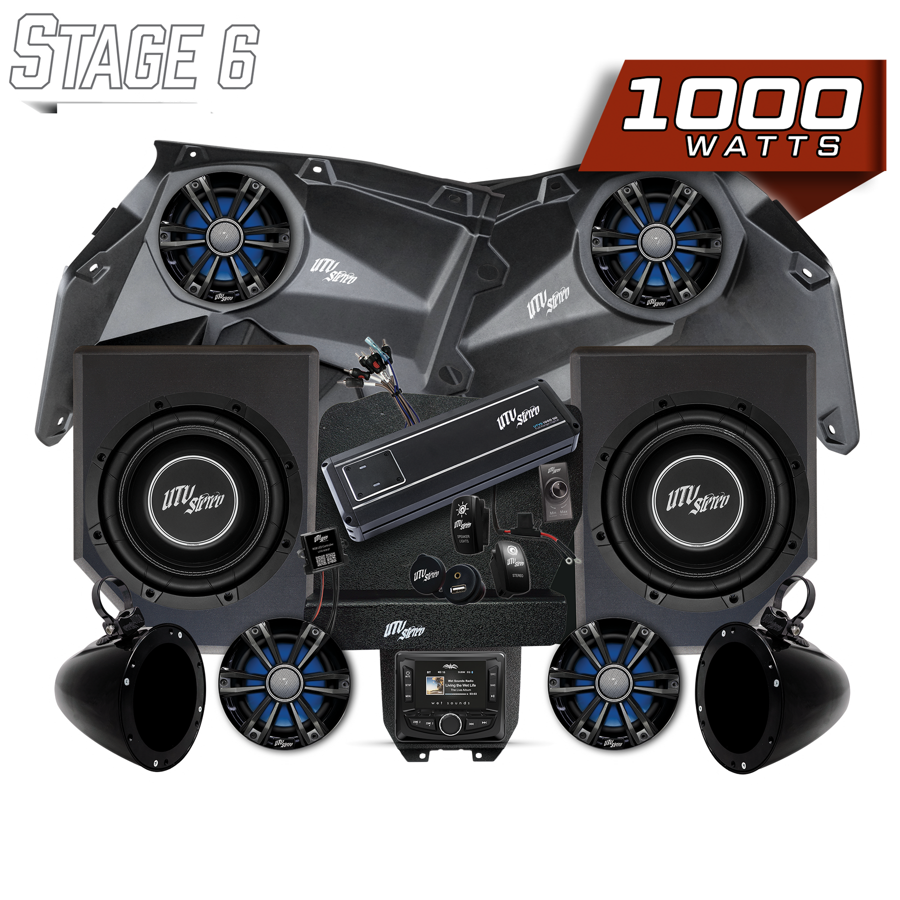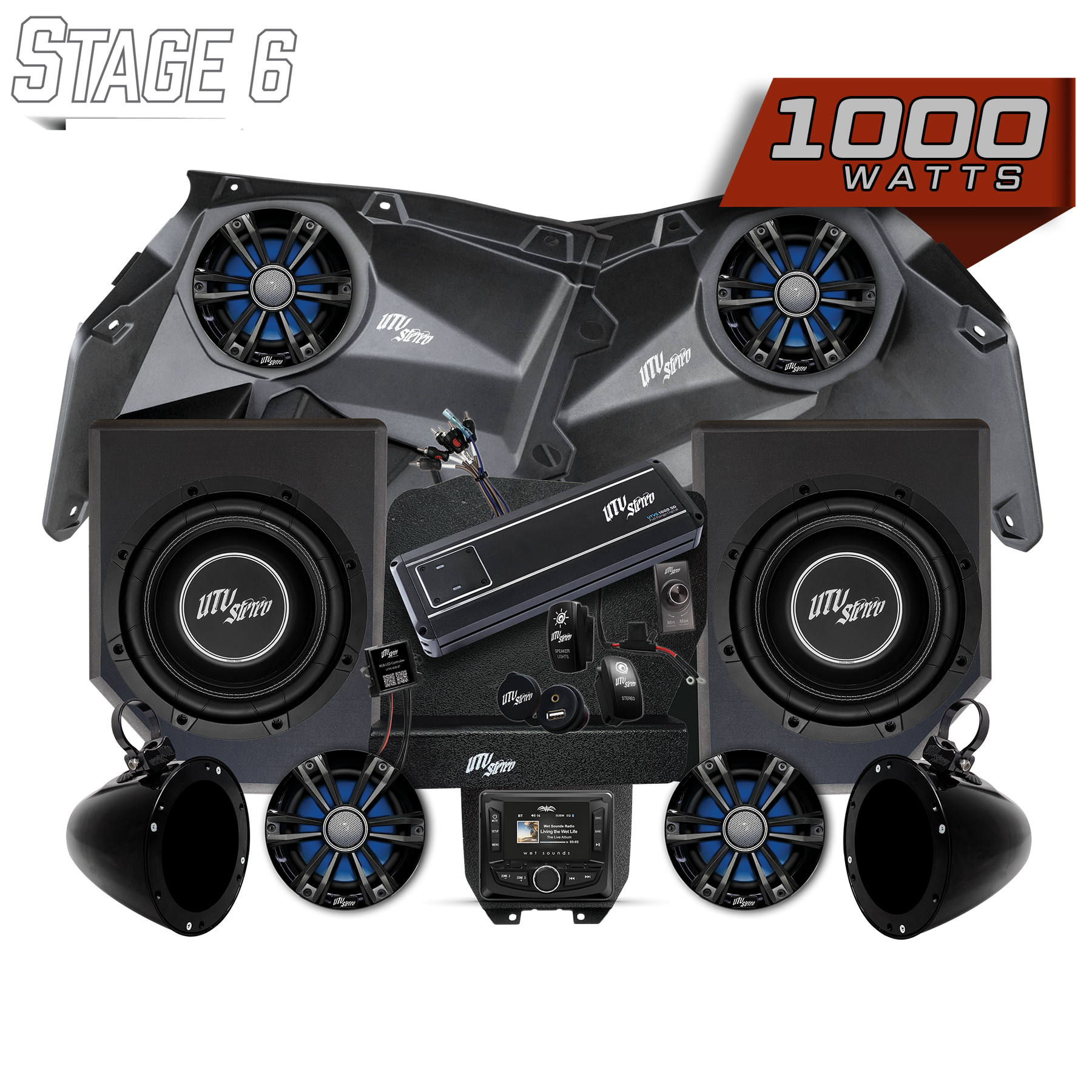 The Can-Am® X3 Stage 6 Stereo kit is our “entry-level” kit but don’t let that fool you. Like all our kits, it has been masterfully crafted and with 1000-Watts, it simply blows ANYTHING else on the market out of the water.