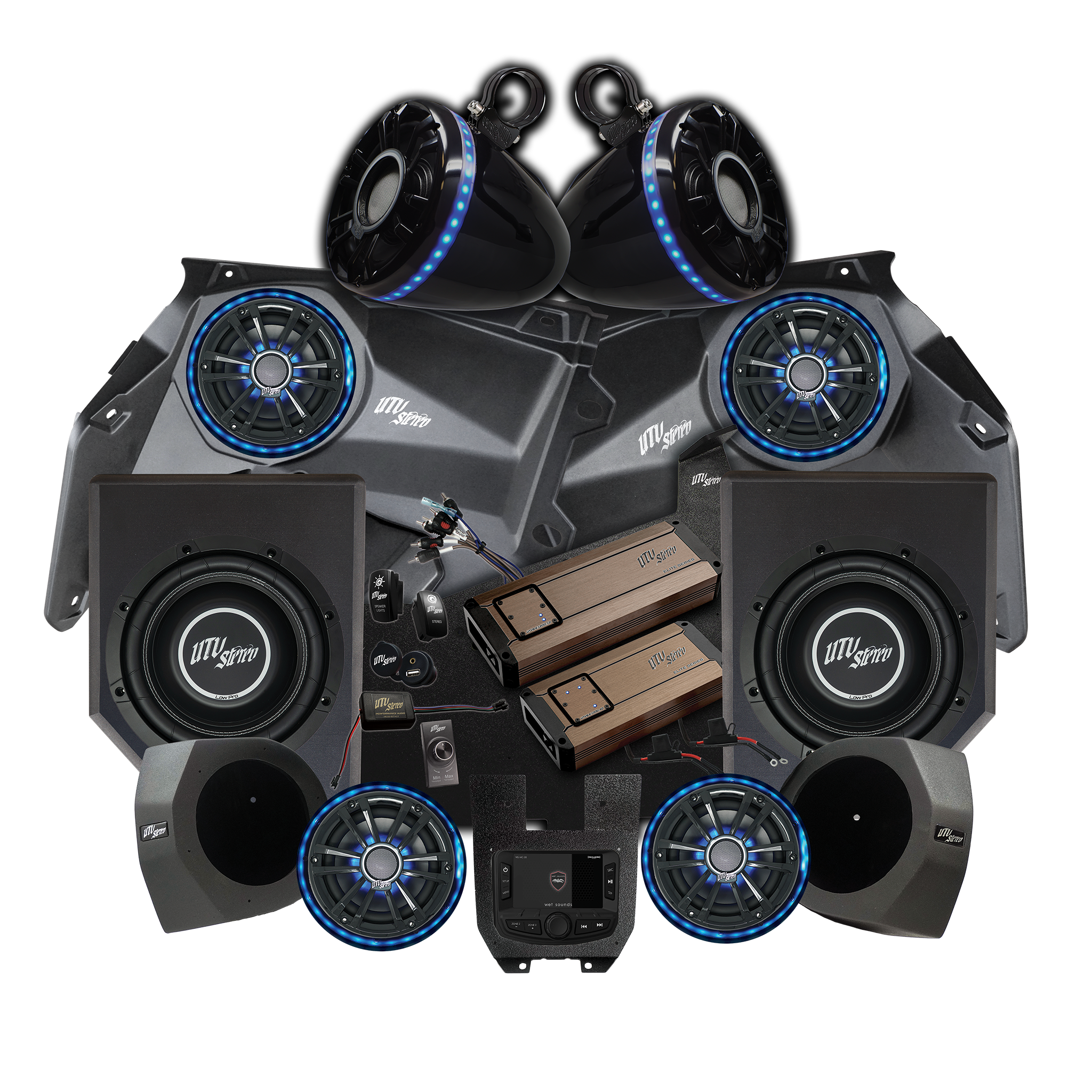 Each Elite Series Stereo Kit comes with LED RGB Speaker Rings to pair with every speaker. These rings are easily customizable and controllable with our Bluetooth® Controller Kit (Also included with this stereo kit)