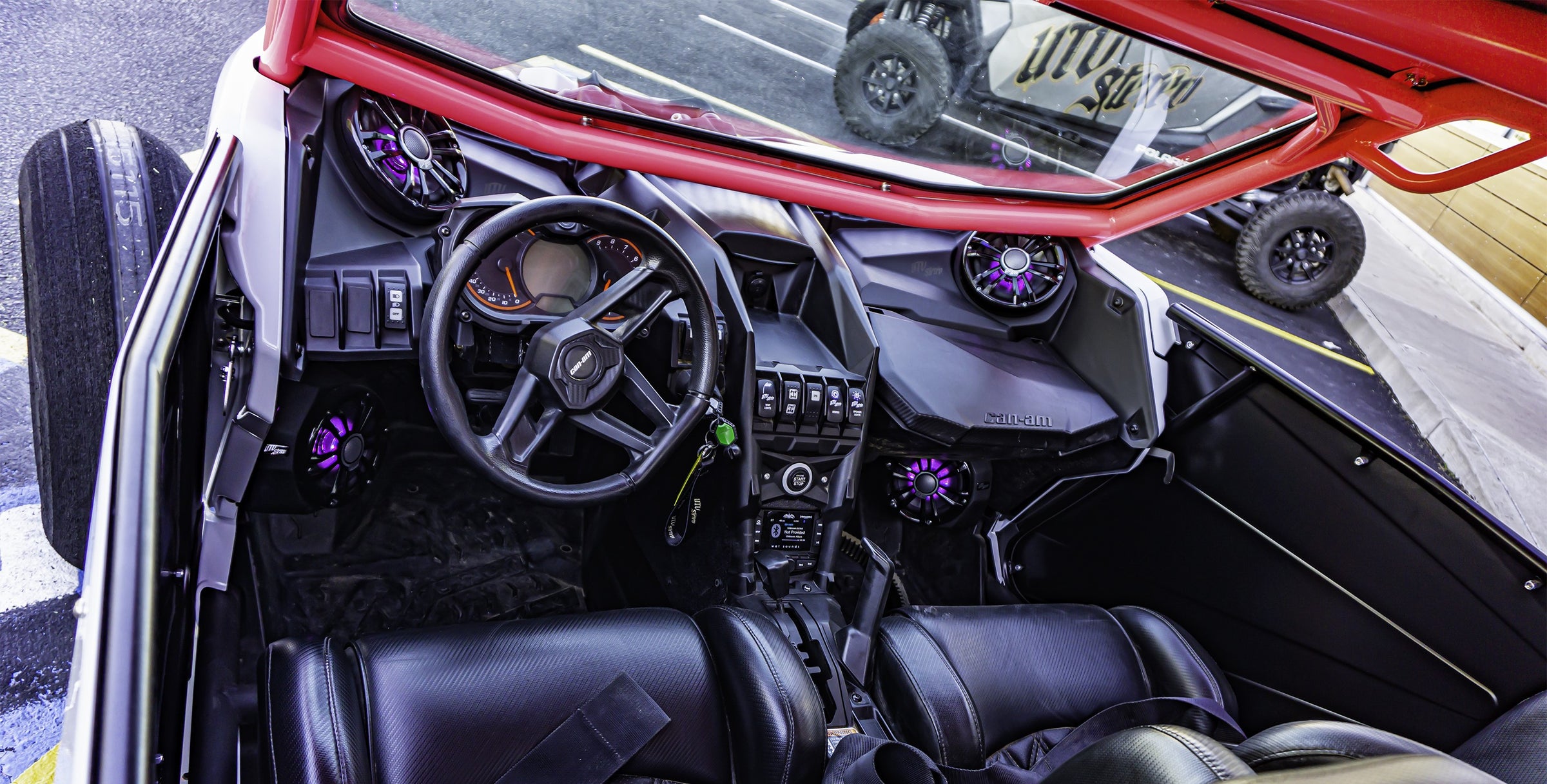 Shake things up a bit with a subwoofer under every seat. Can-Am® X3 Max Models have the option to add two more 10" UTVS Low-Profile subwoofers & another 1000-Watt Signature Series Amplifier.