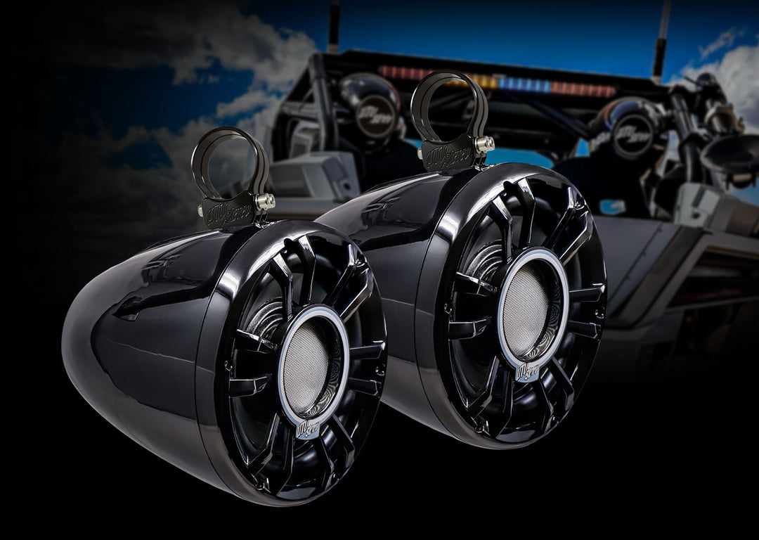 THE PODS: Our 8” Cage Mount Pods feature a premium, durable design with a custom UTV Stereo Axia Alloys® dual-clamp system for easy 360 degree swivel. Perfectly molded and designed for use with UTV Stereo 8” Compression Horn Loudspeakers.