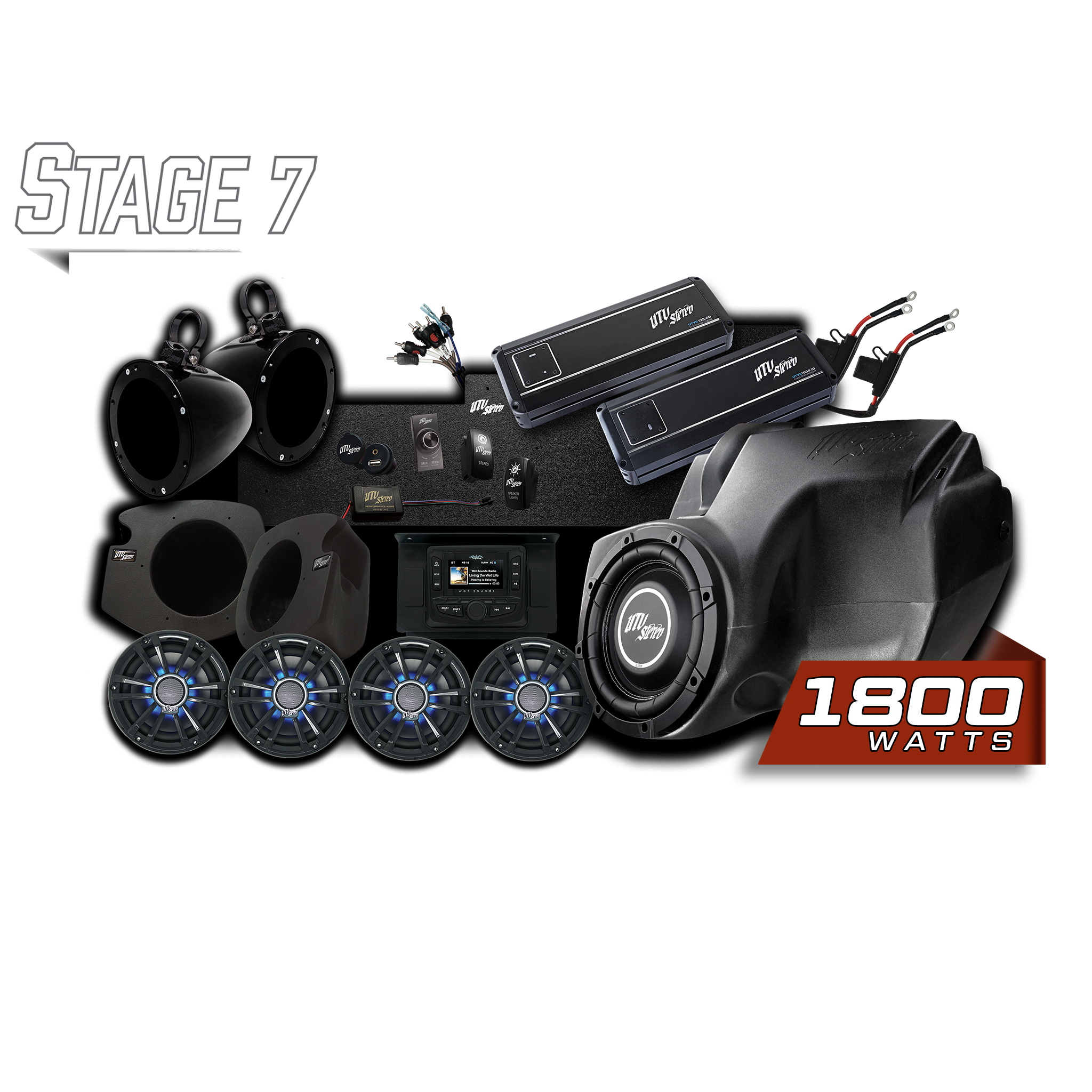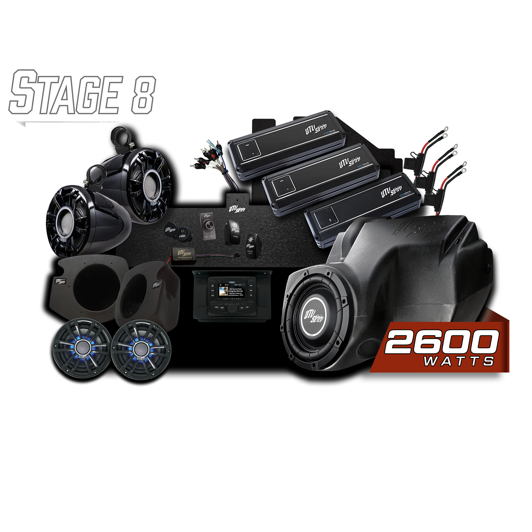 UTV Stereo Signature Stage 6 Stereo System Designed to fit Polaris RZR Models Includes: