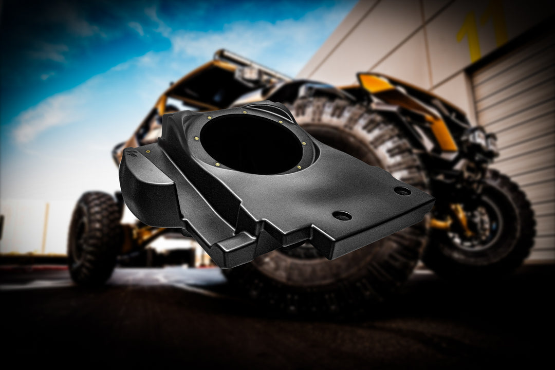 UTV Stereo has designed a 10" subwoofer enclosure compatible with the Can-Am® Maverick R Front Driver