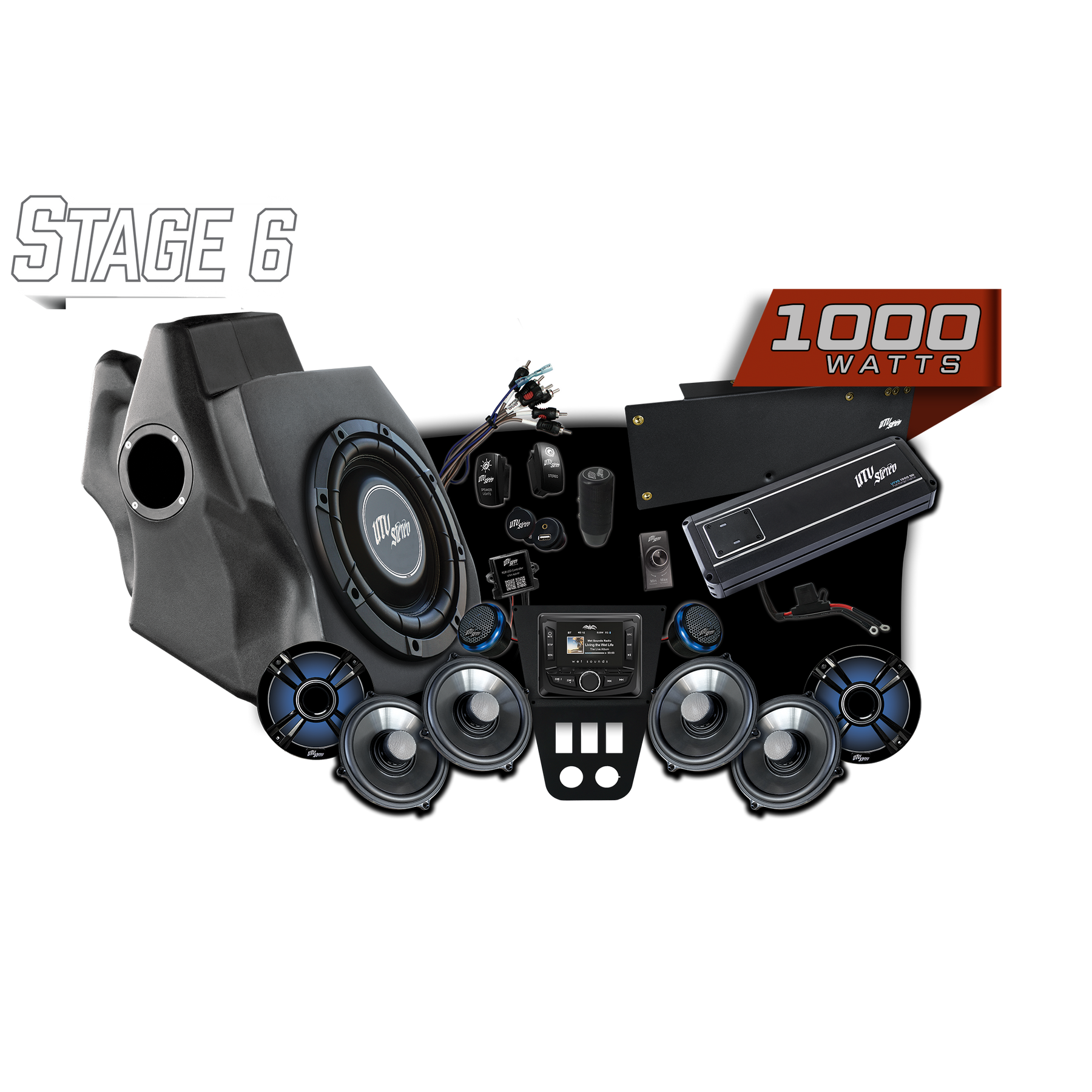 UTV Stereo Signature Stage 6 Stereo System Designed to fit Polaris RZR Pro Models Includes: