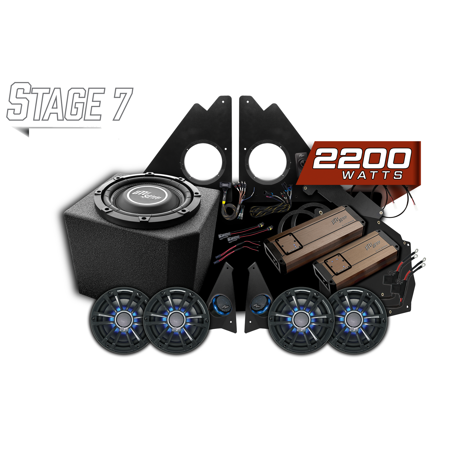 We are proud introduce the Polaris Ranger 1500 Ride Command® Stage 7 Stereo Kit for This kit was designed to allow you to add an aftermarket amplifiers, subwoofer, and speakers to your vehicle utilizing the OEM Speaker enclosures, all while retaining your OEM steering wheel controls and Ride Command® Screen. This is the FASTEST & EASIEST way to upgrade your stock Ride Command System to a new Performance Audio system!