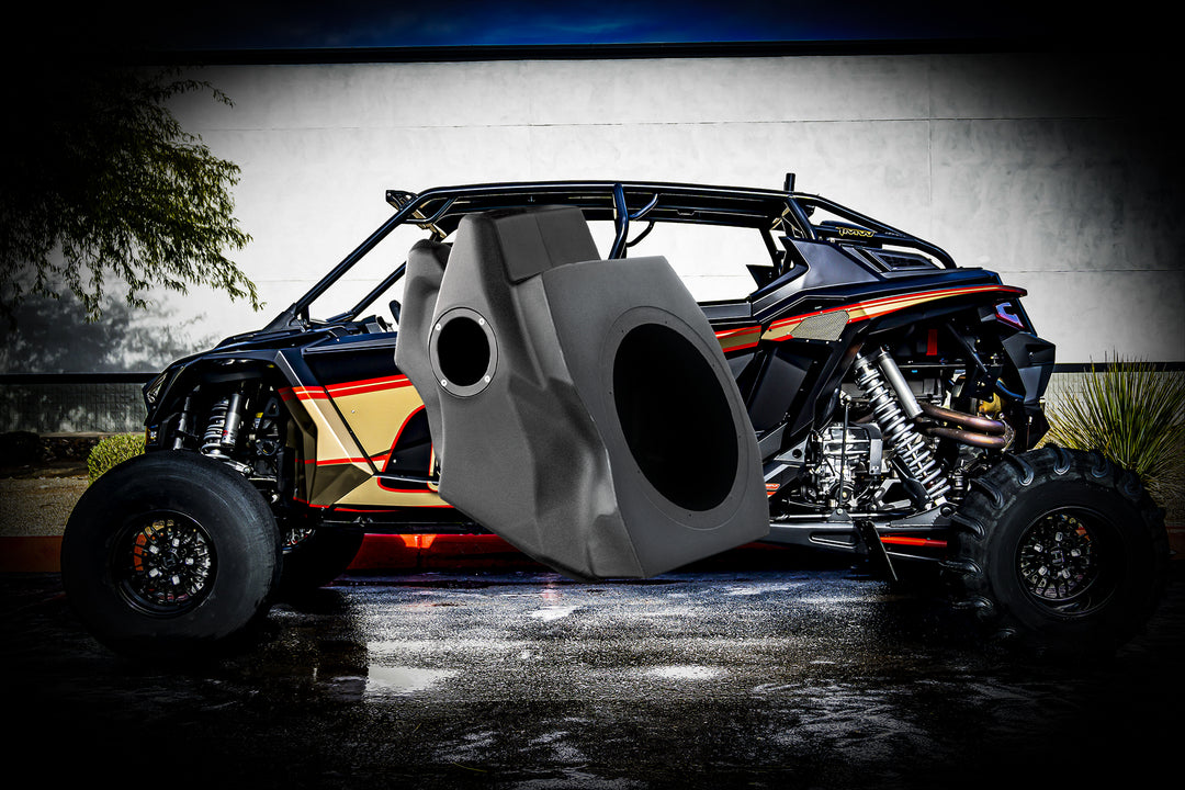 Engineered for maximum output, our 10” enclosure is a form fit, direct interior texture match to your 2020-24 Pro Series RZR® for ZERO firewall rattle, and VENTED towards the amplifiers for extra air circulation. This enclosure provides the LOUDEST & CLEANEST bass response ever designed for your RZR.