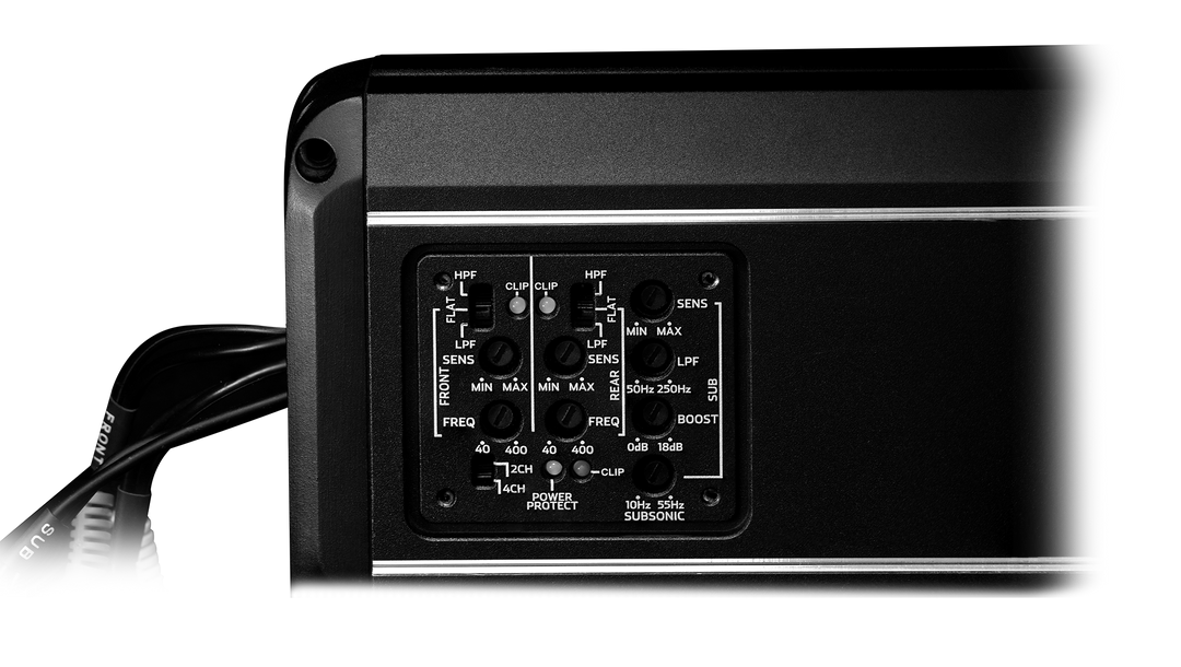 - Crossover Range: HPF: 40-400Hz (F&R CHs) LPF: 50-250Hz (SUB)